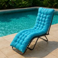 Offrez-vous des moments de relaxation exceptionnels avec ces coussins de bain de soleil bleus qui transforment chaises longues et fauteuils inclinables en véritables havres de paix !