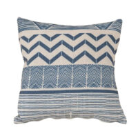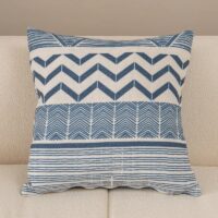 Coussin bohème beige et bleu à motifs géométriques : l'élégance subtile pour votre intérieur