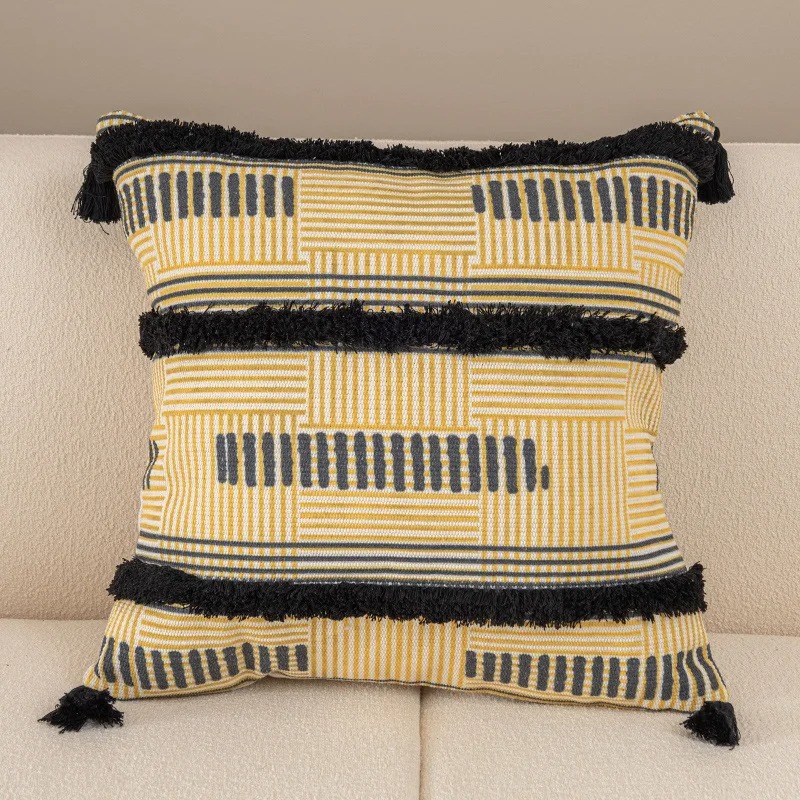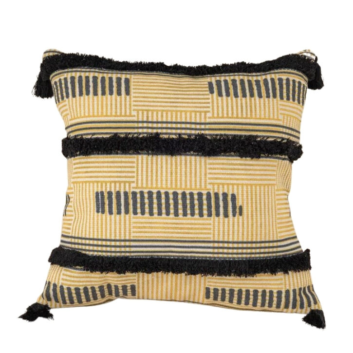 Coussin brodé ethnique : une touche d’authenticité avec des pompons raffinés