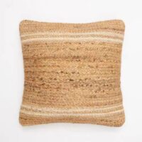 Coussin en toile de jute avec traits blancs : pour une déco moderne et authentique