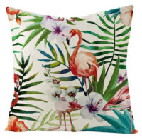 Ce coussin tropical transporte instantanément votre intérieur vers des contrées exotiques. Le flamant rose majestueux se détache élégamment sur un fond de végétation luxuriante, créant un jeu visuel captivant qui attire le regard.