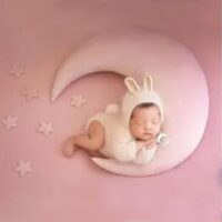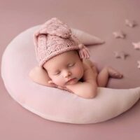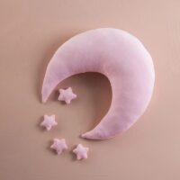 Ce ravissant coussin lune dans un rose poudré tout en douceur s’accompagne de quatre adorables petites étoiles parfaitement coordonnées. Un véritable coup de cœur pour sublimer vos shootings photo de naissance !