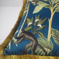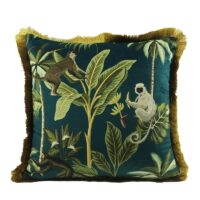 Plongez dans l’univers tropical avec ce coussin jungle qui éveille tous les sens. Les singes semblent danser entre les feuillages luxuriants, créant une scène vivante sur le velours polyester d’une douceur remarquable.