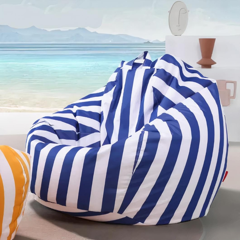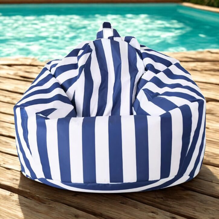 Pouf d'extérieur rayé bleu et blanc – élégance marine et résistance pour votre terrasse ! 🌊⚪🔵